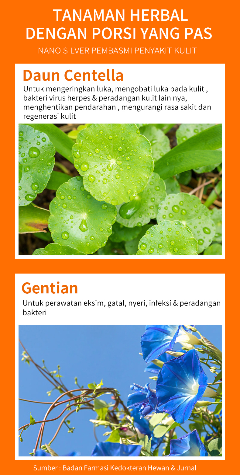 Perak koloid, ekstrak Cistanche, ekstrak Cordyceps militaris, ekstrak Usnea Barbata, ekstrak Centella asiatica, ekstrak akar licorice, dan ekstrak Gentiana.